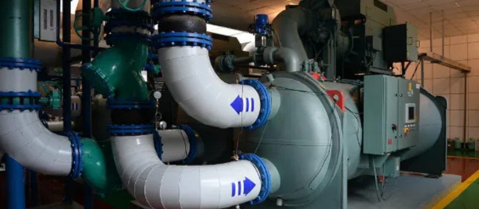 制冷时:冷冻水进水12℃→出水7℃,冷却水进水32℃→出水37℃(冷却塔侧)。